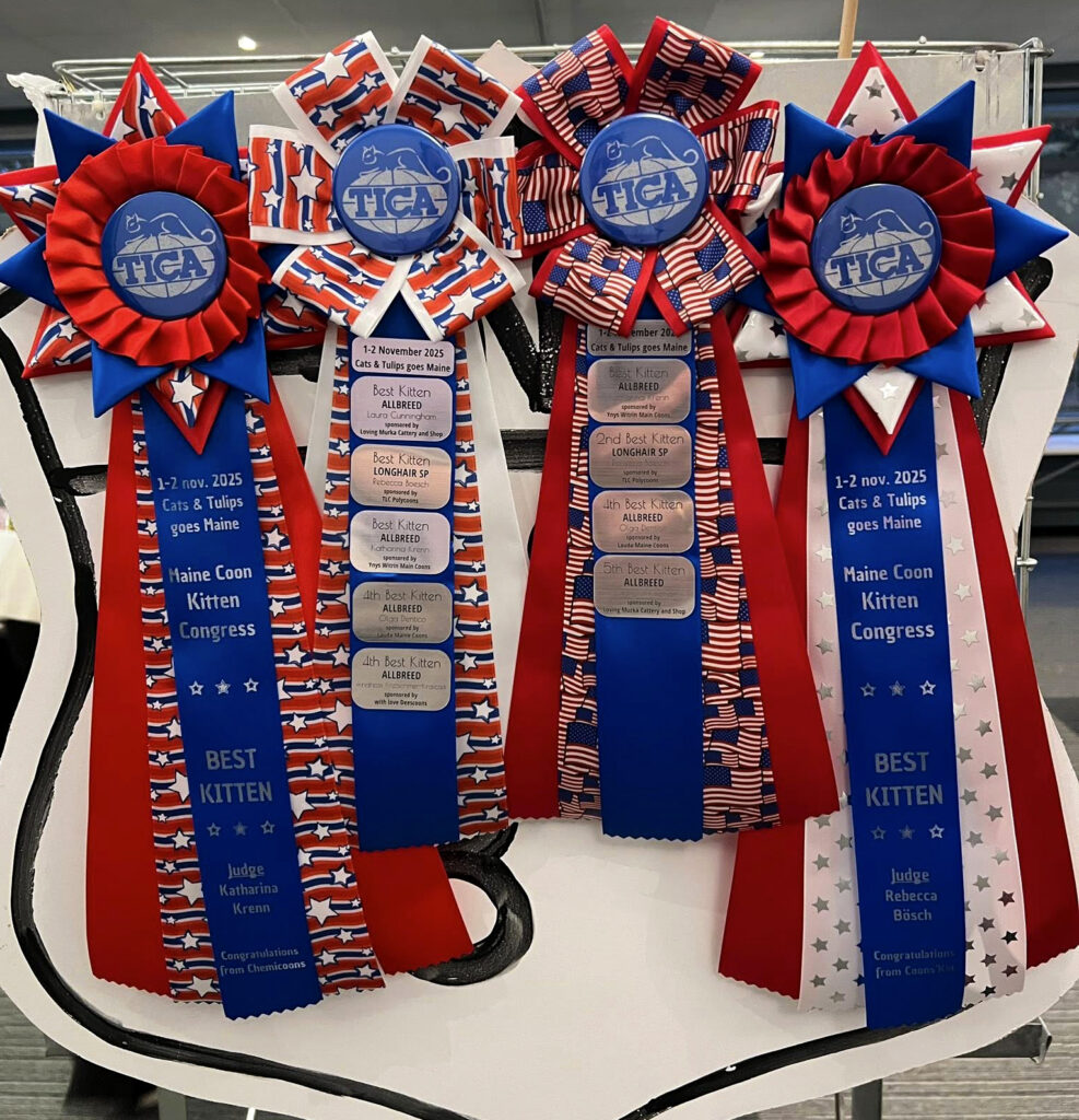 CoonAmor cats have done very well in cat shows around the world, achieving the highest International and Regional titles and awards in TICA. Moments from some of the shows are featured below.